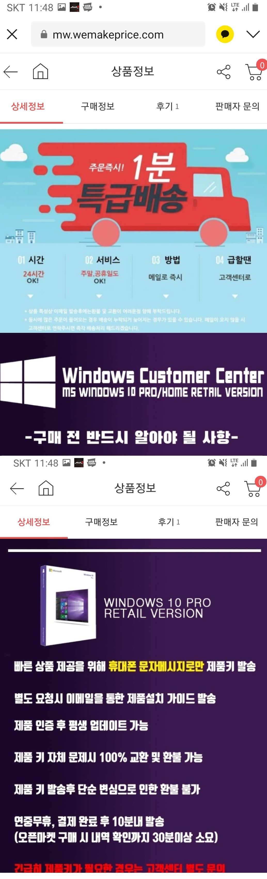 어제 오늘 하루 종일 제 기분을 망치는 일이 있었습니다. 작년에 데스크탑을 조립으로 구매하였는데 요즘에는 윈도우 정품 설치를 하지 않고 주던군요! 컴맹이라 모르고 열심히 사용하였는데 정품 인증을 하지 않으니 호환이 갈수록 뒤쳐지는 것 같아 싼값에 정품인증 키를 인터넷으로 구매할 수 있다고 하여 검색도중 4950원에 정품인증키를 위메프에서 구매하였습니다.